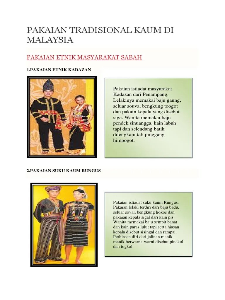 Ste3261 pembuatan pakaian pakaian tradisional pelbagai etnik kadazan bidayuh ahli kumpulan 1 . Pakaian tradisional masyarakat iban pakaian tradisional lelaki iban terbahagi kepada dua iaitu kain sirat dan dandong. Pakaian tradisional lelaki iban baju burung merupakan pakaian tradisi lelaki suku kaum iban. Pakaian tradisional masyarakat iban pakaian tradisonal wanita iban pula, terbahagi kepada tiga jenis iaitu bidang, kalambi dan bedong. Kaum iban merupakan etnik yang terbesar di sarawak.